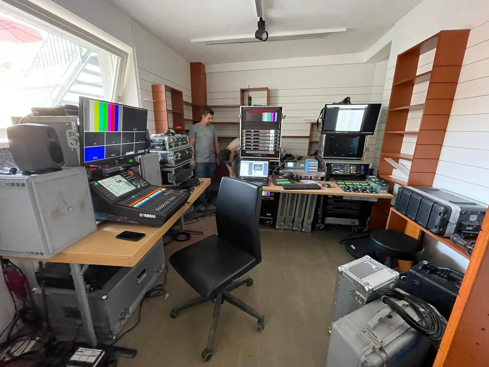 Ziel war es, trotz der außergewöhnlichen Umstände eine Sendung auf regulärem Broadcast-Niveau zu realisieren – mit Einspielern, Interviews, Moderation und vollständiger Bildregie. Dafür konzipierten wir ein kompaktes, mobiles Produktionssetup, das sich schnell aufbauen ließ und unabhängig von vorhandener Infrastruktur funktionierte. Die gesamte Übertragung sollte autark und ausfallsicher erfolgen.